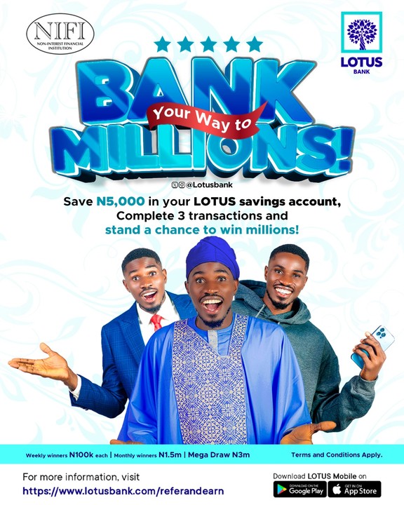 LOTUS Bank’s campaign aims to raise the bar in customer engagement. It provides a pathway to financial growth through innovation and excellence. As the campaign unfolds, customers across Nigeria will have the chance to bank their way to millions and strengthen their financial future with LOTUS Bank.