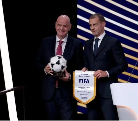 The complaint targets Gianni Infantino, president of FIFA, and Aleksander Ceferin, president of UEFA.
